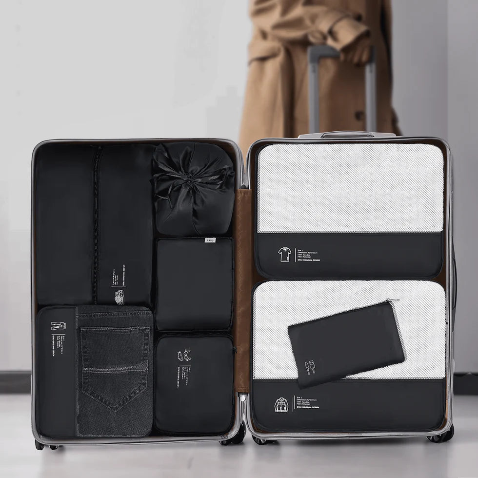 Stay organized with Garzini Packing Cubes—an 8-piece set for men who value efficiency. Maximize space and keep essentials accessible, wrinkle-free, and adventure-ready.
